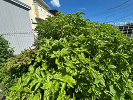 本当は花はとった方が、葉が硬くならなくて良いらしいけど我が家は花も楽しんでいます。
