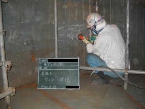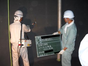 消防用の飲料水兼用貯水槽無溶剤塗装工事(JWWA K-157) 2011 3/29 2011年3月29日 使用塗料JWWA K-157 材料検収 ケレン状況 攪拌状況 塗装状況 ローラーと刷毛で施工 塗膜厚測定検査状況 300μ以上 ピンホール検査 内部塗装完了 工事の特徴 1. 日本水道協会認証登録品塗料(JWWA K-157)を使用2. 無溶剤型(溶剤を含みません)塗料の為、塗装後通水までの養生期間が短い3. 無溶剤型の為、トルエン臭がしません 施工実績 土木 耐震性貯水槽 水族館の海獣用プールの改修(防水と塗装)